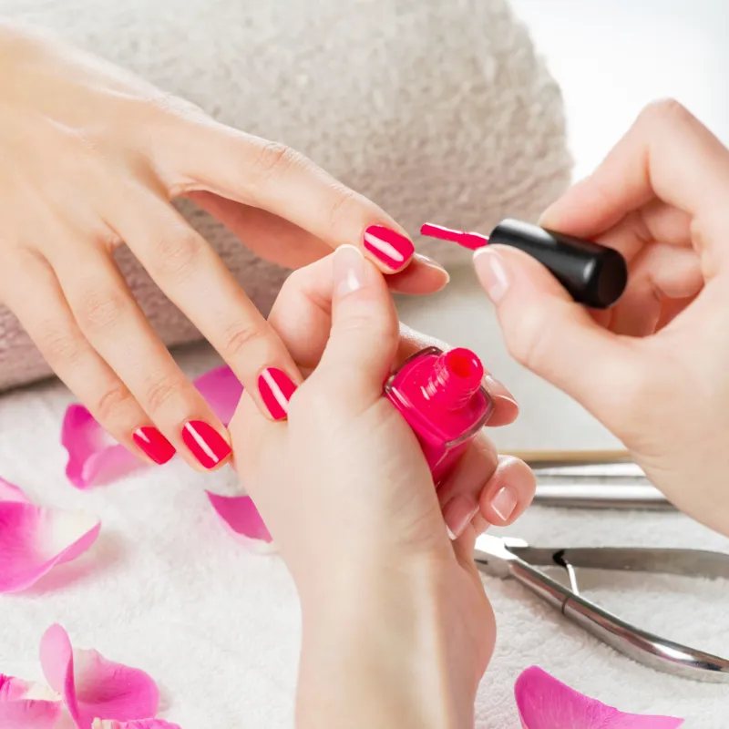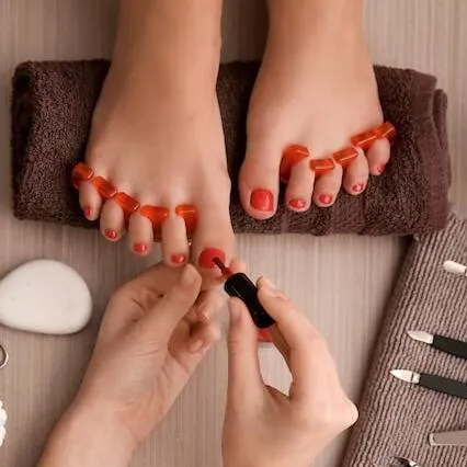 Nail trim, file and shape, Cuticle Care, Sugar Scrub, Callus Treatment, Mini Massage, Hot towel, Polish of your choice